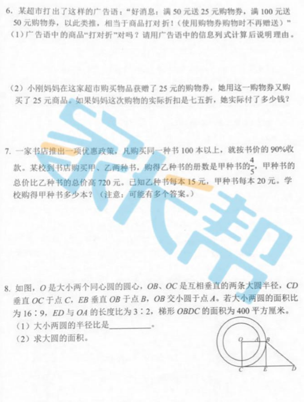 2015-2016年杭州上城区六上期末考试数学试卷(6)