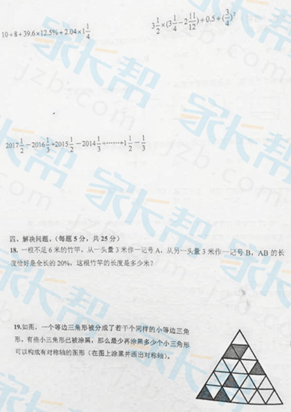 2017年杭州启正中学小升初考试数学试题(3)
