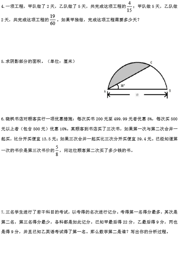 杭州育才中学小升初新生入学考试试题(一)(4)