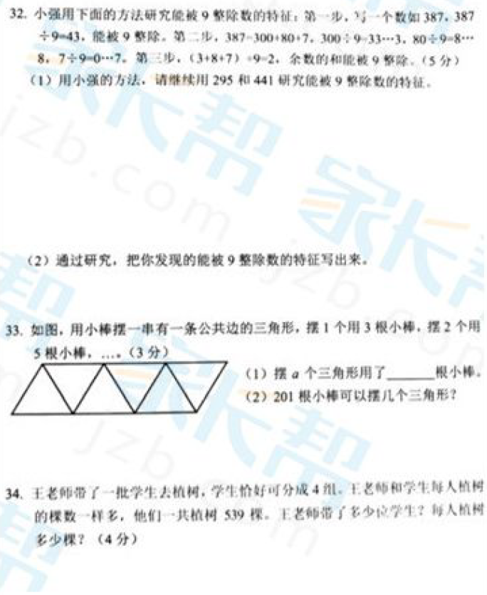 2017年杭州上城区四年级数学期末统测试卷(6)