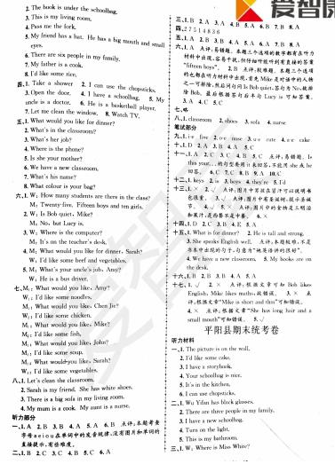 2018杭州四年级英语余杭区期末试题答案(2)