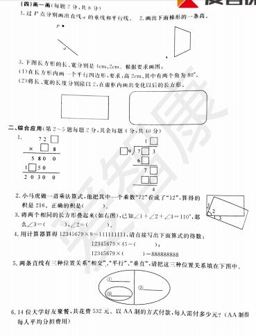 2018杭州四年级数学拱墅区期末试题(3)