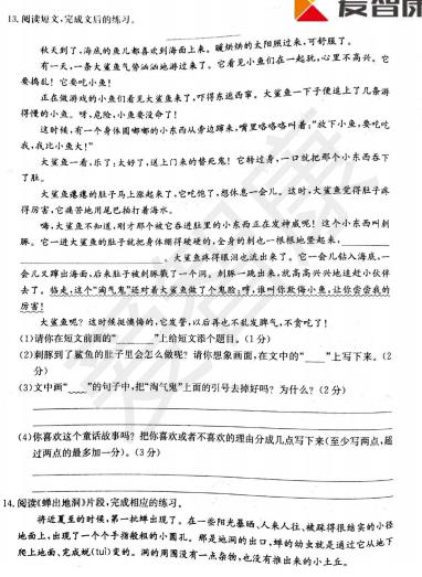 2018杭州四年级语文西湖区期末试卷(3)