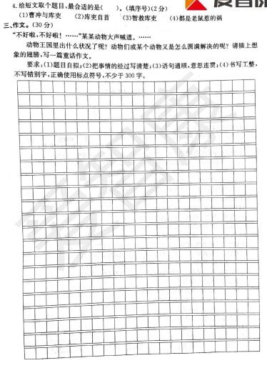 2018杭州四年级语文江干区期末试卷(4)