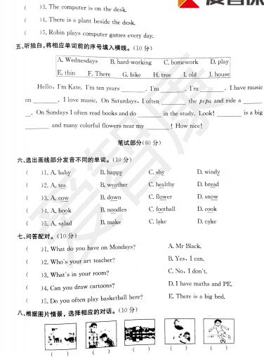2018杭州五年级英语西湖区期末试卷(2)