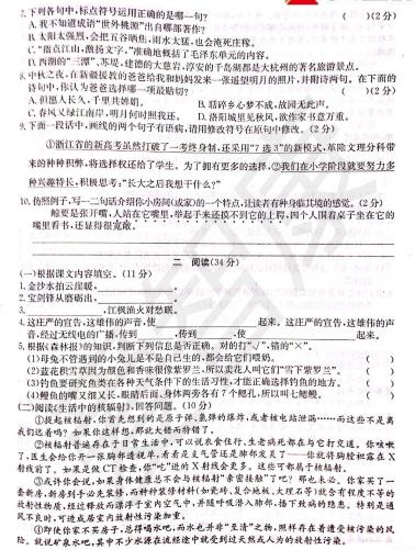 2018杭州五年级语文西湖区期末试卷(2)