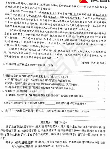 2018杭州五年级语文拱墅区期末试卷(4)