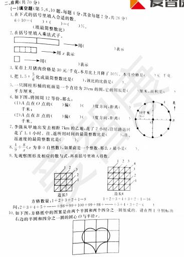 2018杭州六年级数学下城区期末试题(2)