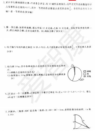 2018杭州六年级数学下城区期末试题(4)