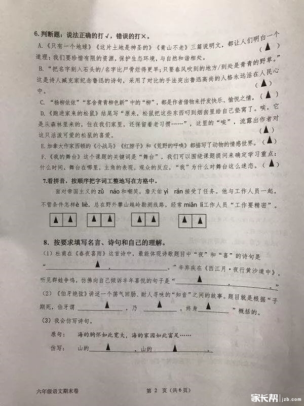 2018杭州滨江区六年级期末语文真题(2)