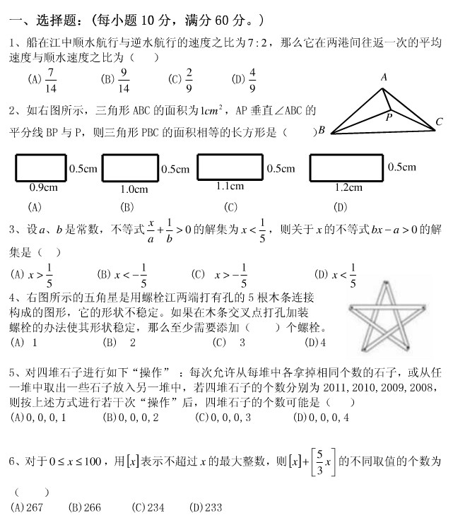 济南奥数网整理 2011-03-21 10:02:35