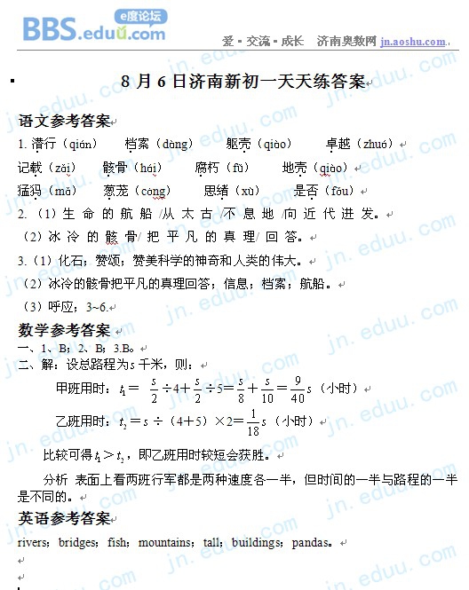 小学升入初中的暑假是关键时期,利用这段时间准初一新生可以预习新中的知识,巩固小学的内容,为新学期打基础。为帮助济南准初一新生做好小升初衔接,济南e度李芳老师推出了暑假新初一预习天天练习题。练习题包括新初一语文、数学、英语的知识点。第二天公布习题答案。
