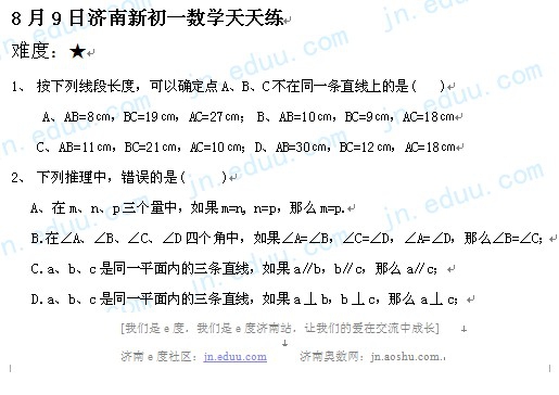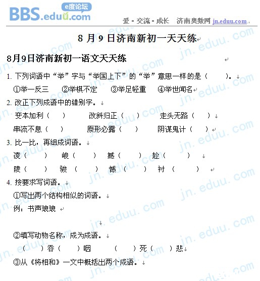小学升入初中的暑假是关键时期,利用这段时间准初一新生可以预习新中的知识,巩固小学的内容,为新学期打基础。为帮助济南准初一新生做好小升初衔接,济南e度李芳老师推出了暑假新初一预习天天练习题。练习题包括新初一语文、数学、英语的知识点。第二天公布习题答案。