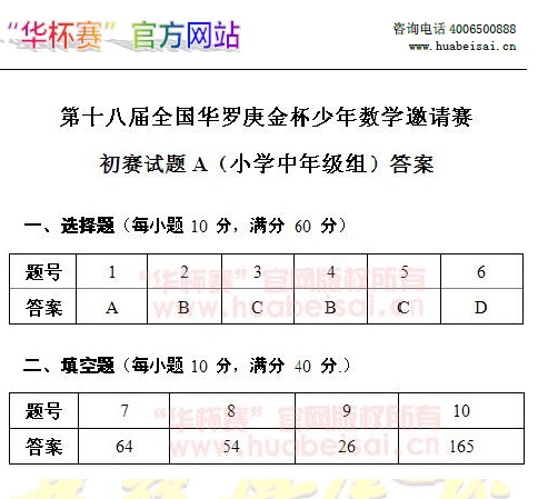 第十八届华杯赛笔试初赛小学中年级组试题及答案(2)