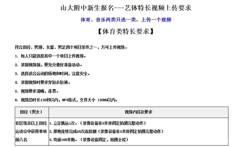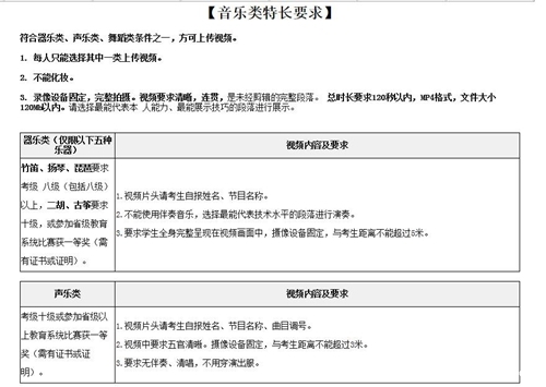 4、选填项:特长生视频:如果有特长的话还需要录制视频上传,没有特长的不填(有特长的话拍视频)要求如下: