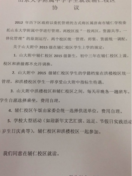 今天已经有2015济南小升初家长到山大附中辅仁分校进行2015小升初入学缴费了,下面是山大附中辅仁分校2015小升初缴费协议,供参考。