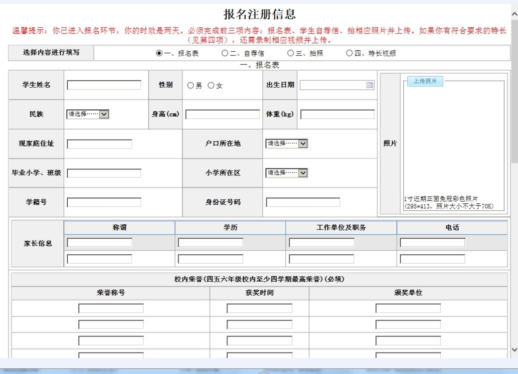 果果截图下2015年的山大附中网上报名需要填写的信息,大家目前根据这个准备,如有16年有变化,请根据山大附中学校通知为准: