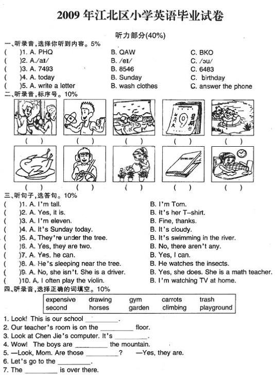 | 2009年宁波江北区小学英语毕业试卷 |