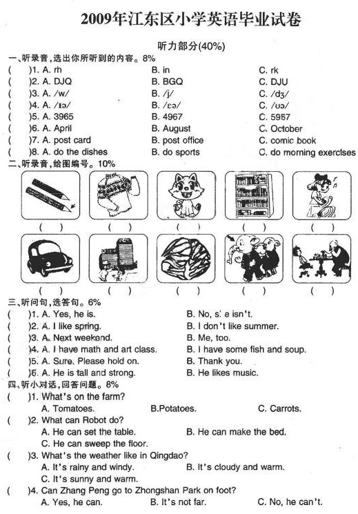 为了帮助大家更好的迎接2012宁波小升初,宁波奥数网小编把宁波各县区市小学英语毕业测试卷整理出来,希望能够给大家提供帮助。