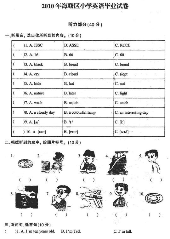 | 2010年宁波海曙区小学英语毕业试卷 |