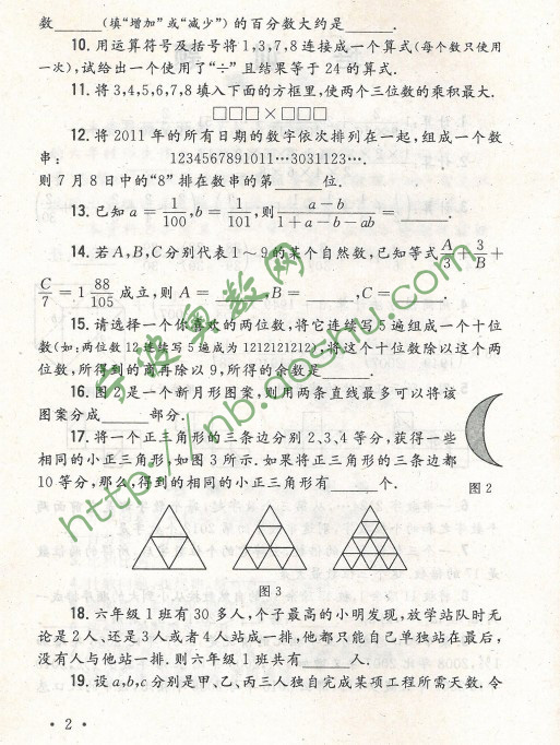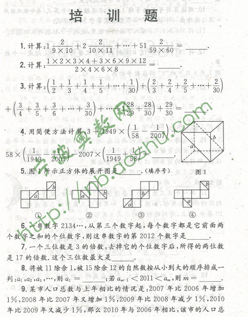 第十届小学六年级“希望杯”培训100题