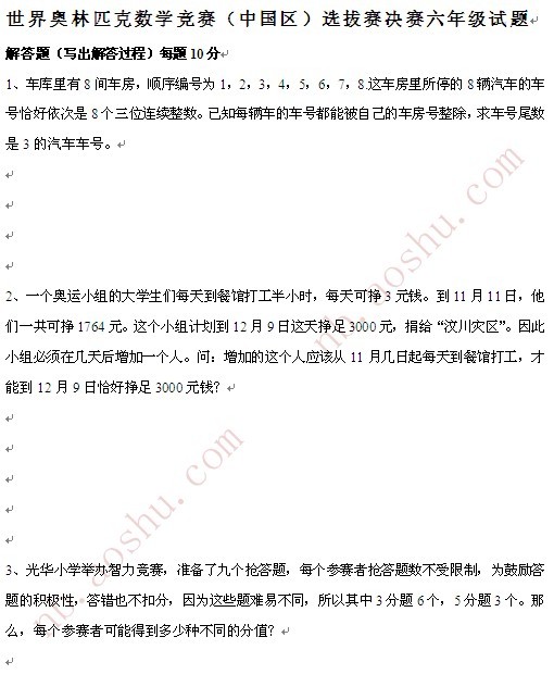 | 世界奥林匹克数学竞赛选拔赛决赛六年级试题 |