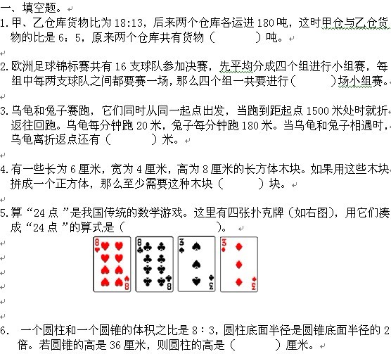 | 蛟川书院2012小升初考前冲刺训练卷 |