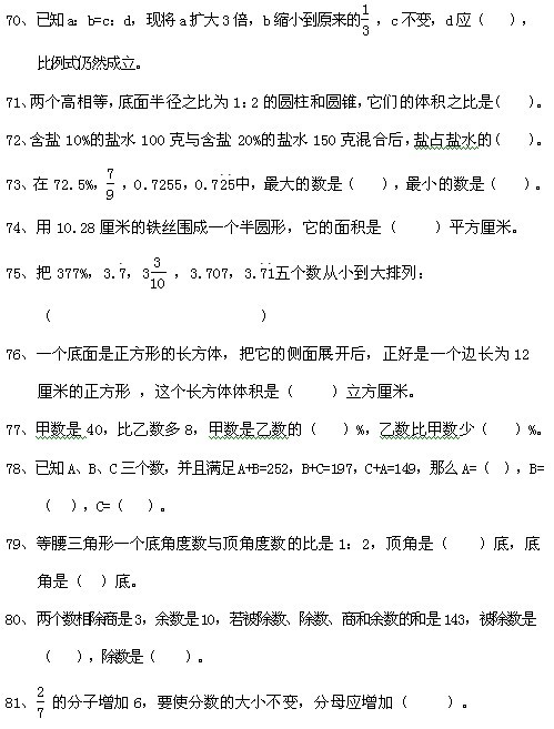 2013宁波小升初数学总复习练习 填空(7)