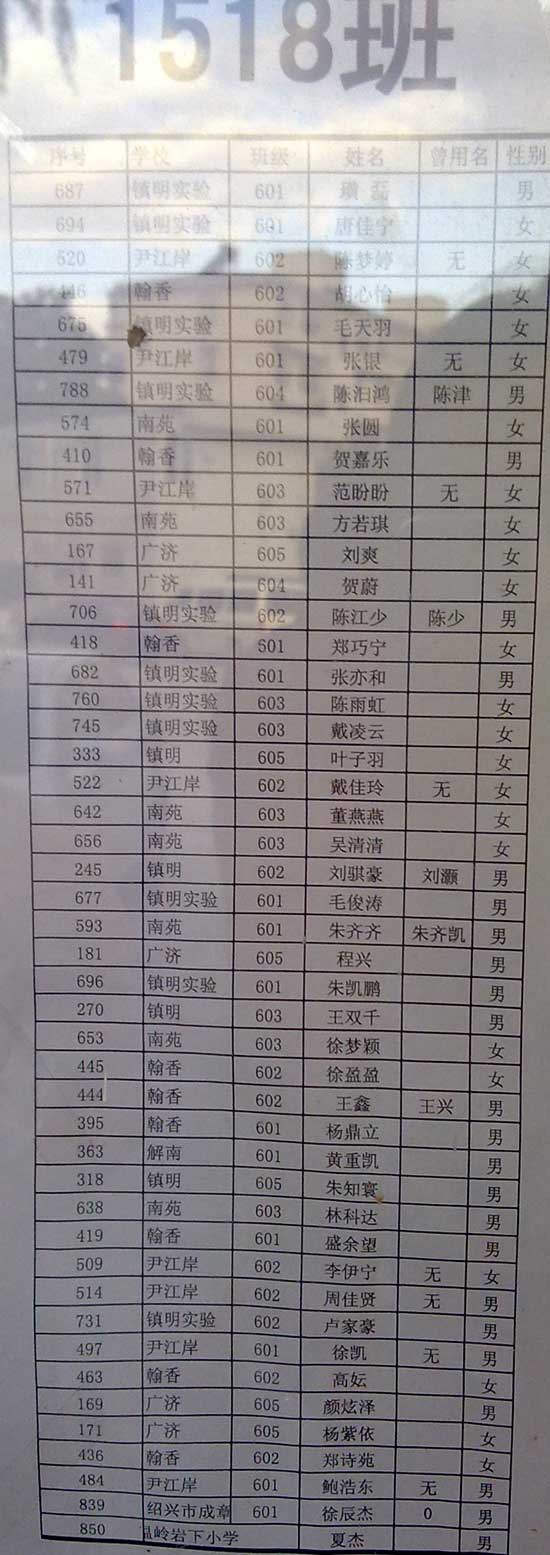 宁波东恩中学2012年初一新生分班名单(18) 宁波奥数网原创 2012-08-27 12:34:13 初一(18)班 以上图片是由东恩中学的家长拍摄,希望这些信息对大家有所帮助。 编辑推荐: 宁波市东恩中学2012年初一新生报名现场 东恩中学:中学生如何养成良好学习习惯 首页 上一页 下一页 尾页