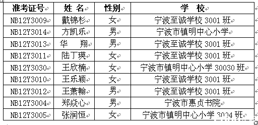 2012年全国青少年语文知识电视大赛宁波赛区初赛晋级名单