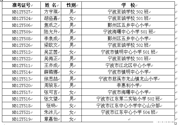 2012年全国青少年语文知识电视大赛宁波赛区初赛晋级名单(2)
