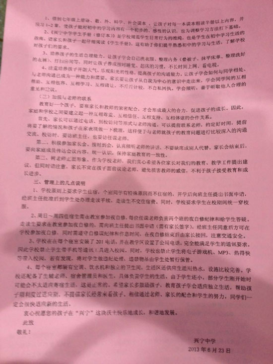 2013年兴宁中学初一新生暑期安排及军训须知(2)