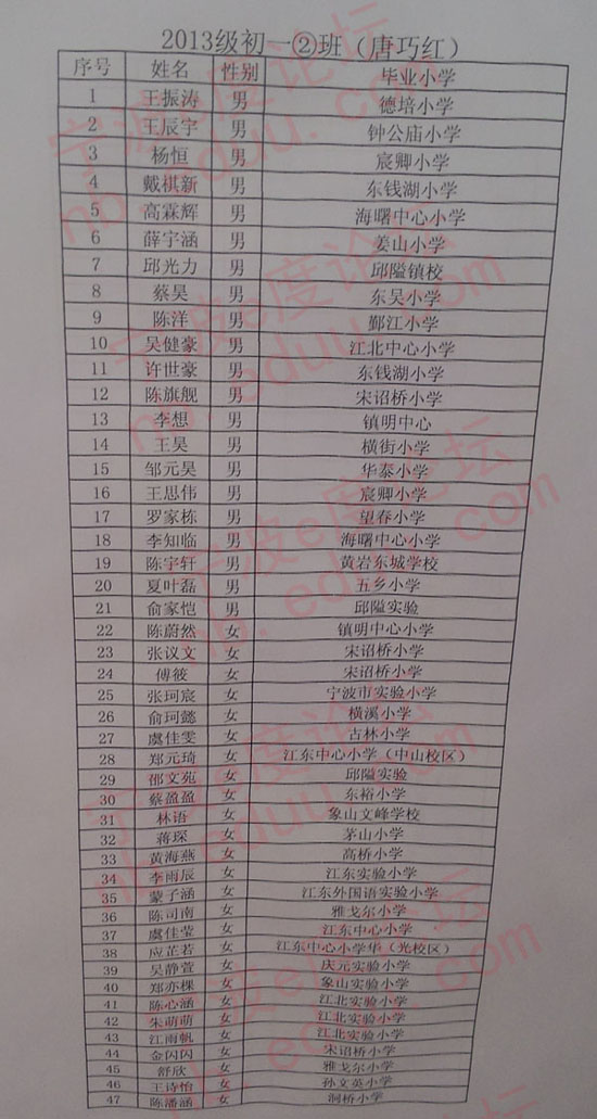 2013年蓝青学校新初一分班名单及班主任安排(3)