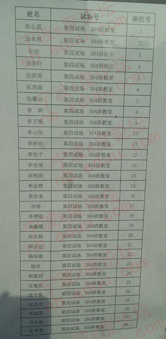 2013年兴宁中学分班考试第四考场学生名单