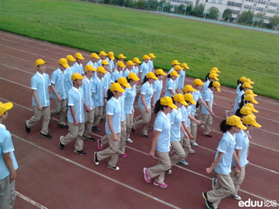 当班级从操场走过,看到班级间队伍不同,有的学生走的快了,没有顾及上下左右的同学,队伍看起来会紊乱,但马上就会在踏步中调整队伍。
