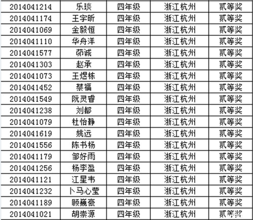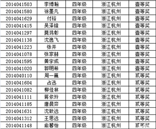 2014年走美杯浙江赛区四年级获奖名单(2)