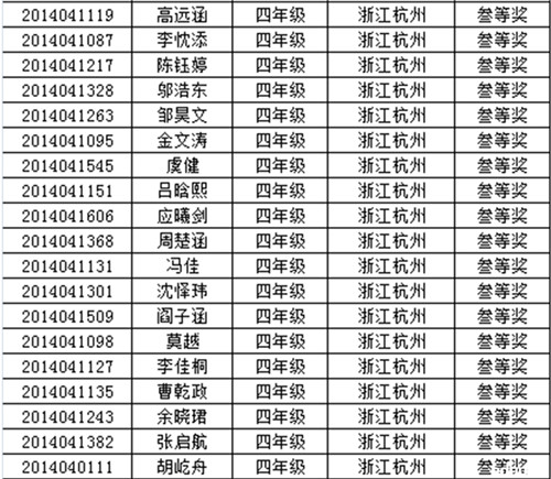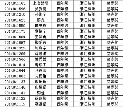 2014年走美杯浙江赛区四年级获奖名单(4)