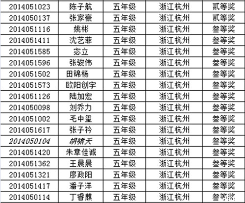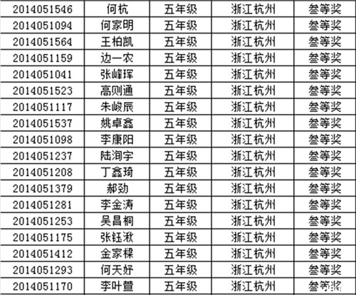 2014年走美杯浙江赛区五年级获奖名单(4)