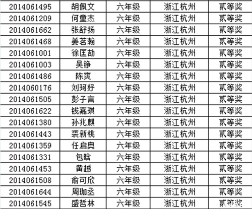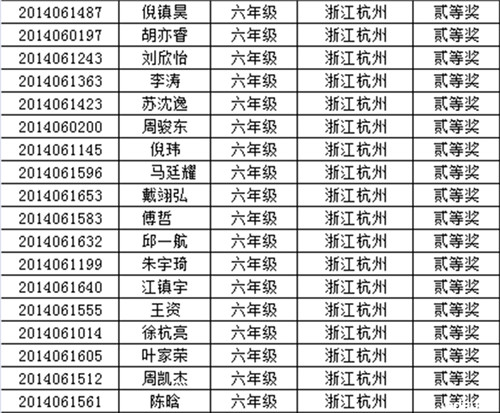 2014年走美杯浙江赛区六年级获奖名单(3)
