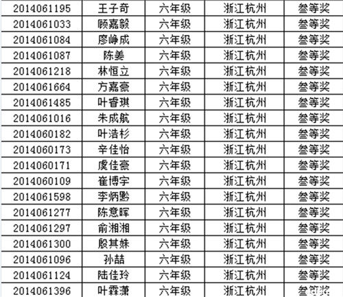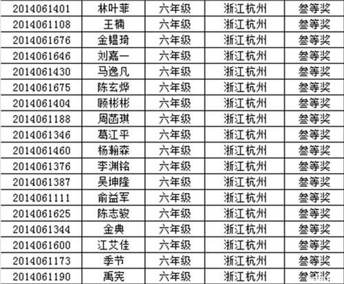 2014年走美杯浙江赛区六年级获奖名单(7)