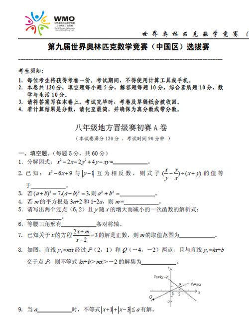 以下为2012年第九届世奥赛初赛八年级A卷试题