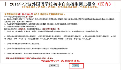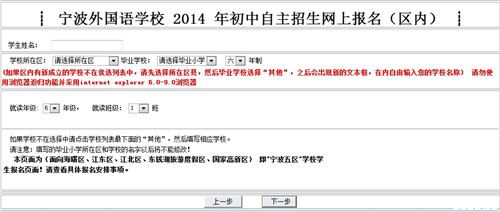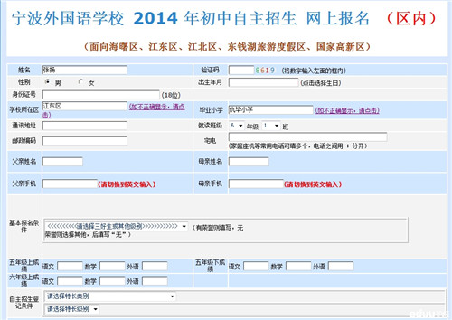┊2014年宁波外国语学校初中自主招生网上报名(区内)