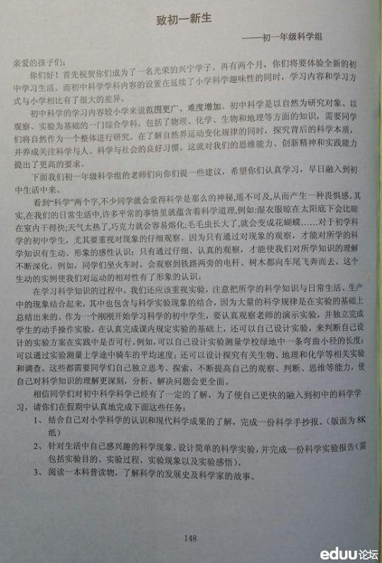 2014年宁波兴宁中学初一新生暑假作业(部分)