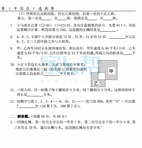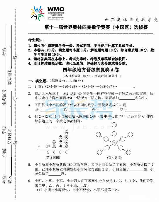 2014年第十一届世奥赛复赛试卷-四年级A卷 宁波奥数网 2014-08-08 19:20:43 宁波奥数网讯:2014年第十一届世奥赛在上海已经顺利闭幕,小编将世奥赛的初赛、复赛的真题进行了汇总,希望相关同学家长及时查看。 首页 上一页 下一页 尾页