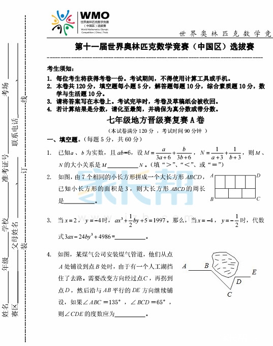 2014年第十一届世奥赛复赛试卷-七年级A卷 宁波奥数网 2014-08-08 19:28:39 宁波奥数网讯:2014年第十一届世奥赛在上海已经顺利闭幕,小编将世奥赛的初赛、复赛的真题进行了汇总,希望相关同学家长及时查看。 首页 上一页 下一页 尾页