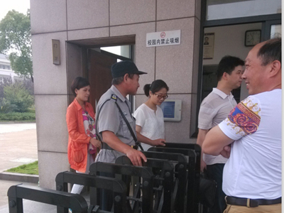 孩子们去考试了,家长们也没闲着,拿着孩子的户口本复印件等候登记,蛟川管理很严,每次只能允许一小部分家长进入校园。