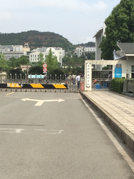 学校门口设立了警戒线,入口处有宁外的小志愿者,考生携带资料进入,排队有序入场,进入学校,家长在外等候。