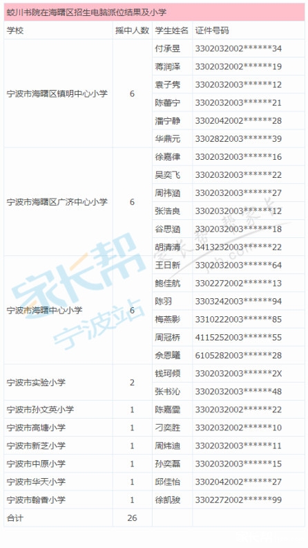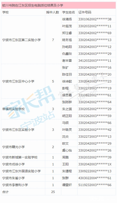 蛟川书院摇号录取名单,以及中奖小学数据统计