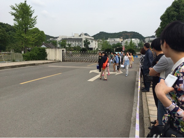 在外等待的家长们,站的坐的看风景的,其实内心不平静吧!