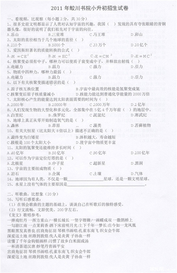 宁波奥数网:2015年宁波小升初进行时,来看看家长的分享:2011年蛟川书院小升初招生试卷。